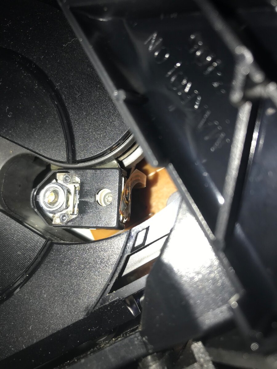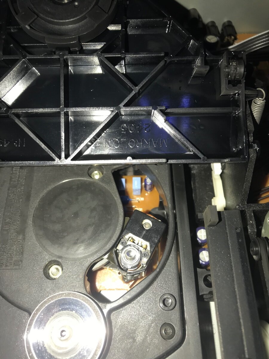 У меня такое было как то раз. Лазер подпрыгивает, как ему положено, диск при этом крутится в разные стороны за каким то хреном, после чего проигрыватель если и начинал читать, то только первые две дорожки, затем останавливался. Дело было именно в шлейфе, в определенном положении пропадал один контакт из 16-ти (лазер KCP-1H). В моем случае шлейф был съемный, двумя руками тестил контакты, третьей рукой гнул шлейф. Нашел, отрезал, зачистил, вставил - супер гуд! Не очень просто, но получилось. В 4/19 не снимается со стороны головки вроде бы, запаян, надо снимать. Ну и конденсаторы конечно, синенькие аксиальные умеют сильно емкость терять. Но, как бы и че, ну осталось у него там 10 мкф из 33-х, например, но это не повод так себя вести))