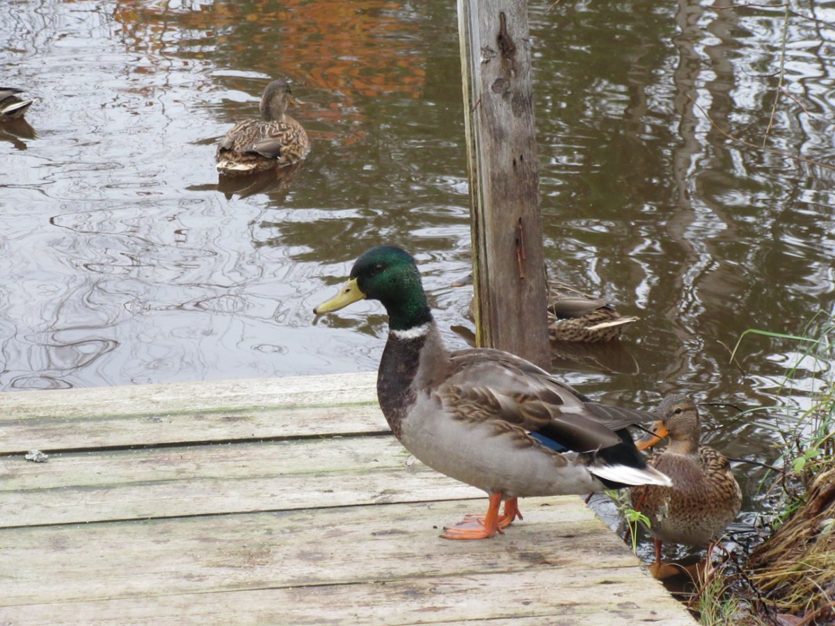 На этом пруду и на нашем дачном участке за это лето-осень выросло четыре выводка утят. Теперь уже взрослые. Сначала, как стали на крыло, улетели на озёра - “сдавать экзамены в лётной школе”. По окончании “лётных курсов” вспомнили про свою альма-матер и стали прилетать каждое утро и улетать только в сумерках. Одновременно в день на пруду бывает иногда более 15-ти взрослых уток. В день на их прокорм уходит от 2-х нарезных батонов хлеба и более. Свои ведь как никак, голодными не оставишь! Как проголодаются, так сами приходят к самому крыльцу дачного дома. Вот так и живём на своей даче, с утками в придачу.