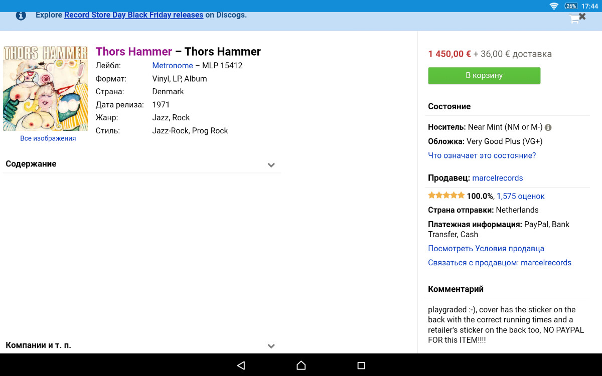 Послушал. Понравилось. Очень. Уже купил пластинку. 2-ой альбом. Скоро приедет. Хотел еще и первый взять… Оригинал просто неподъмлем: 1000 - 1800 евро.