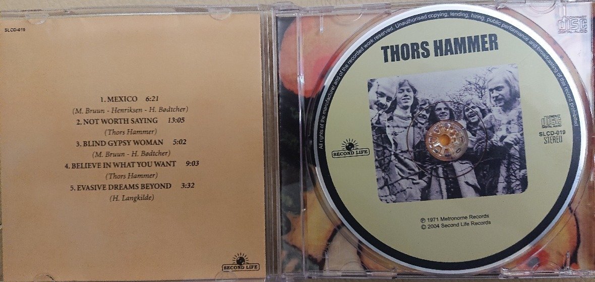 Thors Hammer, датский прогрессив с элементами джаза. Выпущен один альбом в 1971 году в количестве 500 копий и ещё 100. Альбом редкий, цена на оригинал серьёзная. Покупал СД из-за редкости, по музыке наверное не всем зайдёт.