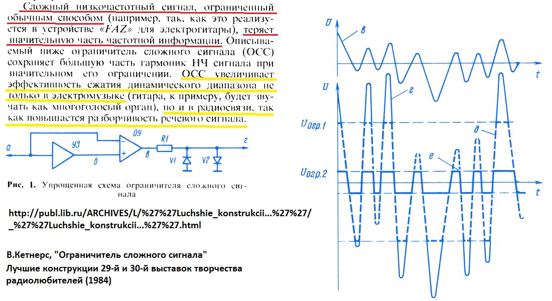 Но нет, за все надо платить и за повышение отношения СШ вы заплатите тем что ограничитель вырежет часть звуковой информации. Вот радиолюбитель Кетнерс предельно честно описывает вопрос, вырезается частотная информация то есть информация в частоте!