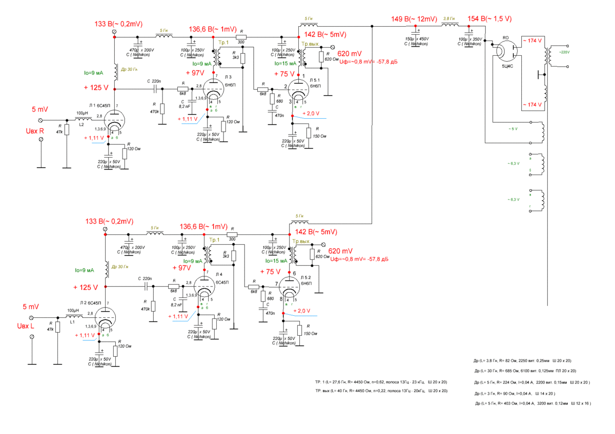 - первого каскада пит-я 10 Гн; 285 Ом; Ш 16 х24 (ТВЗ1-9); Io≤ 20 mA; 3500 вит. ; Ø 0,16 мм